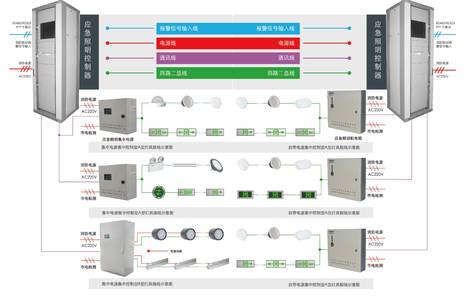 控制器(落地)+电源(A型+B型)/配电箱+集电集控灯具(A 型+B型)/自电集控灯具(A型)