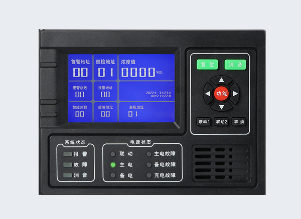 控制器通过查询方式获得探测器信息,经高速CPU数据处理,通过LCD显示出探测器相应的浓度、状态并输出相应的控制器信号。